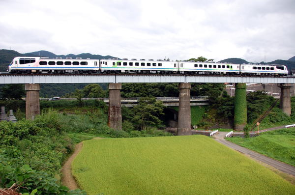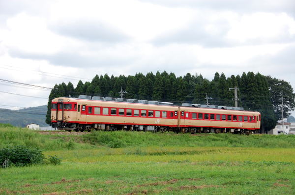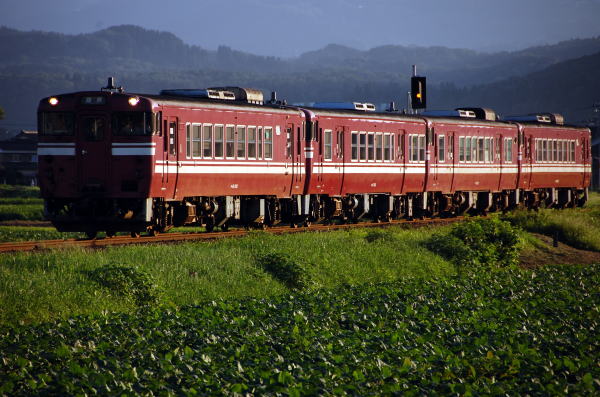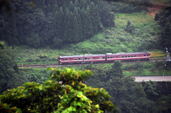 昨年初めて撮影した越中八尾「おわら風の盆」の臨時列車(おわら臨)でしたが、今回も会社の休暇がピッタリ合ったので、一日だけでしたが撮影に行きました。行きは去年と同じで、S君の車に乗って車中泊です。今回はS君の友人で、私とも九州ブルトレなどでかなり同行しているT君も一緒です。 ![]() 2009/09/01 07:37 千里−越中八尾 朝のキハ58は千里−越中八尾で狙いました。 ![]() 2009/09/01 08:06 越中八尾−千里 返しも同じ場所。 ![]() 2009/09/01 08:06 越中八尾−千里 広角で。 ![]() 2009/09/01 08:46 東八尾−笹津 2番のキハ58は俯瞰で狙いました。 ところが、同じ場所で狙っていた人たちが「58じゃない」とのこと。 拡大してみると・・・47でした。 ![]() 2009/09/01 08:48 笹津−楡原 キハ58系でなければ、追いかける必要もありません。 とりあえず俯瞰で撮影。 ![]() 2009/09/01 08:49 笹津−楡原 ずーっと見えるので更に撮影。 ![]() 2009/09/01 08:49 笹津−楡原 更に更に撮影。 ![]() 2009/09/01 09:21 千里−越中八尾 猪谷行きがキハ58でなかったので、また平地に戻ってきて58系運用を撮影です。 ![]() 2009/09/01 09:40 越中八尾−千里 キハ120は定期でもたくさん走ってるし、あまり写欲が出ないので、稲穂と絡めたイメージ写真で。 ![]() 2009/09/01 10:05 越中八尾−千里 58は普通に。普通もアレですが。 ![]() 2009/09/01 10:50 速星−千里 それでもキハ120の4連は撮ってみたり。 ![]() 2009/09/01 11:04 千里−速星 ![]() 2009/09/01 11:30 千里−速星 ![]() 2009/09/01 13:07 笹津−楡原 去年と同じ笹津駅前の食堂で昼ごはんを食べて、午後の撮影に。 ロケハンで見つけた神社の脇から。 ![]() 2009/09/01 13:34 笹津−楡原 ワイドビューひだも来たので撮影。 ![]() 2009/09/01 13:56 楡原−笹津 キハ120は4連だけ撮影。 ![]() 2009/09/01 14:27 笹津−楡原 先に来る予定の下り富山行きワイドビューが来ません。本当は上のキハ120を撮った場所で 待っていたのですが、なかなか来ないので「先にエーデル使用の臨時が来そう」ということで、 エーデルの場所に戻りだすと・・・・。 時間読み違えた!!本当に先にエーデルが来てしまい、 準備する時間も全くなかったので、白とびの激しい写真に・・・・・ ![]() 2009/09/01 14:58 猪谷−楡原 気を取り直して、上りを撮影するポイントに移動。これも現地ロケハンの場所です。 ようやくワイドビューが来ました。 ![]() 2009/09/01 15:14 猪谷−楡原 エーデルも折り返してきました。 この後、富山口に既にスジがないためワイドビューひだは八尾打ち切り!! ほとんど回送状態ですぐに八尾を折り返して行きました。 ![]() 2009/09/01 15:55 千里−越中八尾 もう一本のエーデルは最初は午前中のあたりで狙おうかと考えていたのですが、途中で変更。 先に一人撮影している人がいたところにお邪魔して撮りました。 ![]() 2009/09/01 16:09 千里−越中八尾 この場所が結構気に入ったので、ここで一本目の特急「おわら」を撮ることに決定しました。 ![]() 2009/09/01 16:37 千里−越中八尾 前走の各列車で「おわら」の試し撮りです。 ![]() 2009/09/01 16:42 越中八尾−千里 後追いの「ワイドビューひだ」はうまく行きました。 ![]() 2009/09/01 16:53 千里−越中八尾 しかし、本番に弱いタイプなので「おわら」は失敗してしまいました・・・。 ![]() 2009/09/01 17:10 千里−速星 返しの回送は千里駅そばの踏切で。ヘッドマークそのままで返ってきました。 ![]() 2009/09/01 17:26 速星−千里 次の二本目の「おわら」はここで撮ることにして、他の列車も撮影。 ![]() 2009/09/01 17:36 速星−千里 若干間延びした感じに・・・。嗚呼。 ![]() 2009/09/01 17:39 千里−速星 40系の臨時を撮ったところで、私は終了となりました。 このあと、千里駅から富山行き普通列車。富山からはくたか→ときの乗り継ぎで帰って来ました。 |