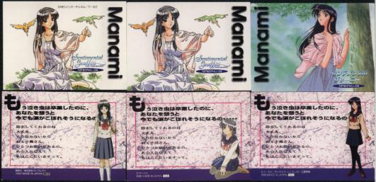 センチGのゲーム内で七瀬優と宮島に遊びに行くイベントがある。そのイベント内で「夜の海」に対するコメントを求められる所がある。私がゲームをやったときは正直に「夜の海って怖くない?」という選択肢を選んだ。私の本心である。しかし、優はそれでは満足しないらしい。ベストな選択肢は「星って海面に映るのかなぁ?」である。私にはそんなことは考えも付かない。そうなると優との相性は良くないらしい。ま、私には杉原真奈美嬢がいますからね。